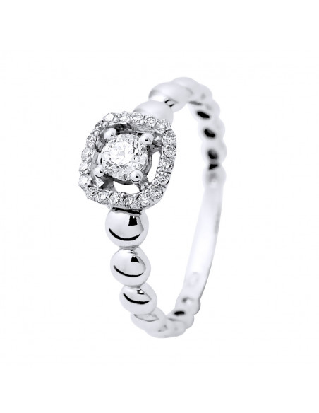 Bague Joaillerie Solitaire Prestige - 0,30 Cts (Centre Diamant 1x 0,12 Cts + Entourage 18 x 0,01 Cts ) - Or Blanc - Disponible Taille Paires 48 à 62