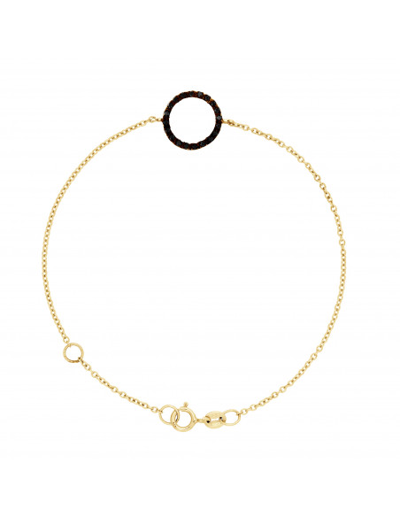 Bracelet Or Jaune 375 Millièmes avec Motif CERCLE Diamants Noirs 0,20 cts - Qualité HSI - Longueur réglable de 15 à 18 cm - Livré avec certificat