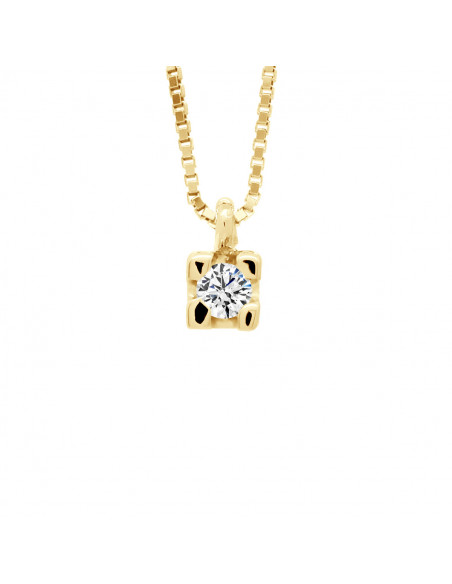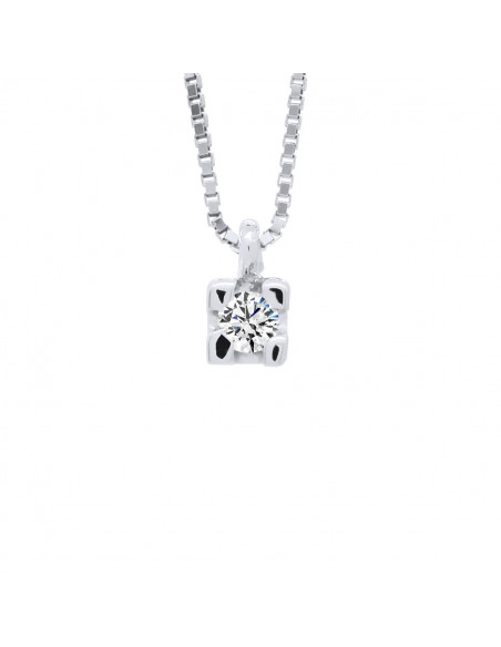 Collier Solitaire Diamants 0,03 Cts - Qualité HSI - Chaine Vénitienne Or Blanc - Longueur 42 cm