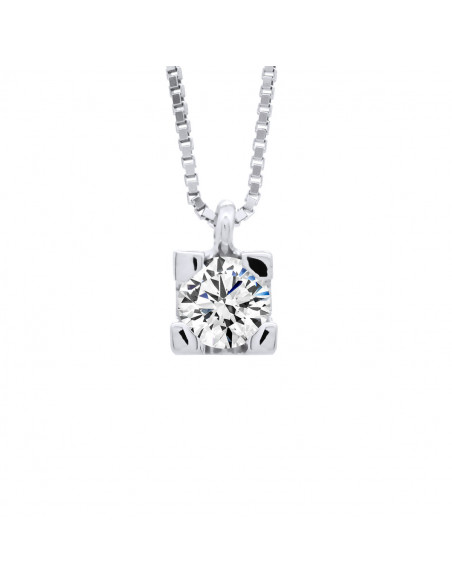 Collier Solitaire Diamants 0,15 Cts - Qualité HSI - Chaine Vénitienne Or Blanc - Longueur 42 cm