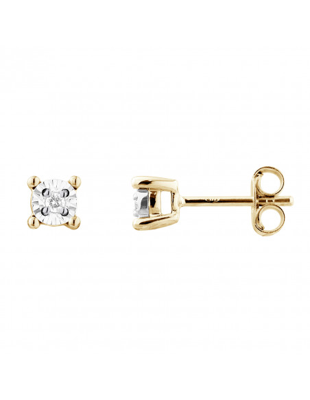 Boucles d'Oreilles Joaillerie Prestige - Or Jaune 375 Millièmes - Serti Illusion - Diamants 0,05cts - Qualité HSI - Système Poussettes