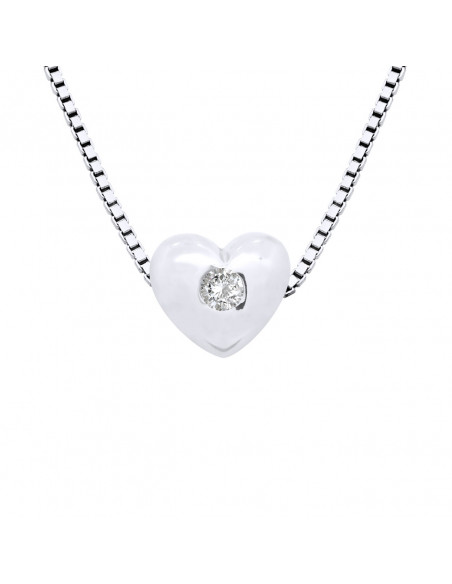Collier Maille "Vénitienne" en Argent 925 Millièmes Rhodié orné d'un CŒUR serti avec un véritable Diamant 0.03 Cts - Longueur 42 cm