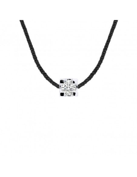 Collier Lien Nylon torsadé de couleur NOIR orné d'un SERTI GRIFFE avec véritable Diamant 0.05 Cts - Longueur 42 cm