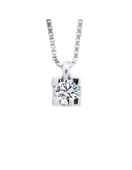 Collier Chaine Vénitienne 42 cm en Argent 925 Millièmes Rhodié SERTI 4 GRIFFES ORNE D'UN VERITABLE DIAMANT 0,07 Cts