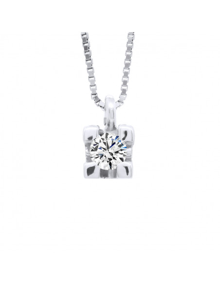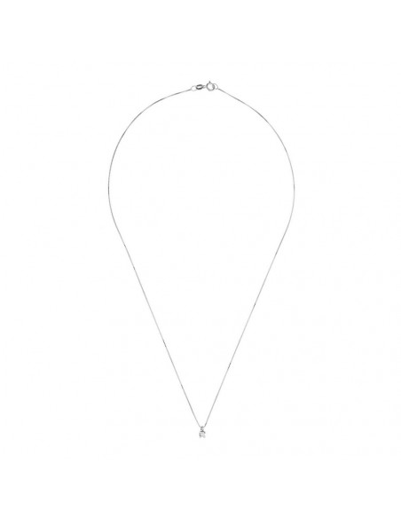Collier Chaine Vénitienne 42 cm en Argent 925 Millièmes Rhodié SERTI 4 GRIFFES ORNE D'UN VERITABLE DIAMANT 0,10 CTS