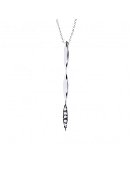 Collier en Argent 925 Millièmes Rhodié avec Pendentif Tige & Diamants 0.02 cts - Longueur 42 cm
