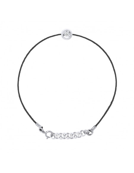 Bracelet Lien Nylon Tressé de couleur NOIR orné d'un SERTI CLOS avec véritable Diamant 0.03 Cts Qualité HSI - Longueur 18 cm